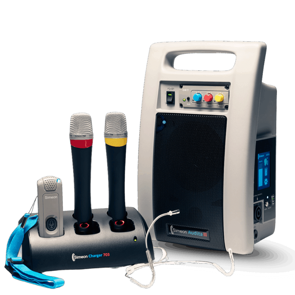 Created by Simeon Canada, the system comprises a lightweight transmitter, a pendant microphone that the teacher can wear around the neck, and two microphones that can be passed around the classroom to allow students to participate in discussions. These have been designed to be small enough to easily fit into the hands of younger students.